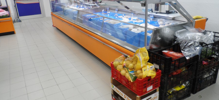 Per il reparto surgelati sfuso è stato utilizzato il banco Rossini RD BT mentre i per il prodotto confezionato sono stati utilizzati degli armadi con vasca e vetrina chiusi con vetrate retrattili PUSH mod. CAYMAN